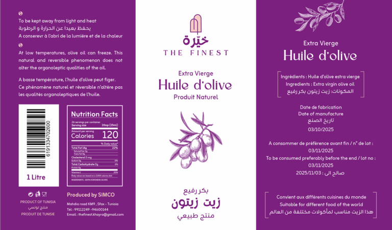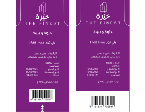 Création de tickets élégants et lisibles pour chaque produit, respectant l’identité visuelle de la marque. Chaque ticket présente clairement le nom, les informations essentielles et apporte une touche esthétique qui reflète le raffinement et la qualité des produits Khaira The Finest.